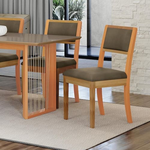 Assento: Espuma | Cor: Corino Cappuccino | Encosto: Almofada lisa | Espuma: Densidade 33 | Matéria-prima: Eucalipto | Altura da cadeira: 92,5 | Largura do assento: 44,5 | Quantidade de cadeiras por conjunto: 2 | Requer montagem: Não | Profundidade do assento: 55,5