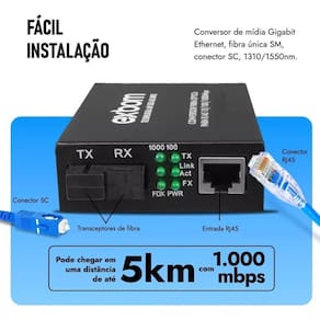 - Conectores: 1 Conector SC, 1 Porta RJ-45 Fêmea