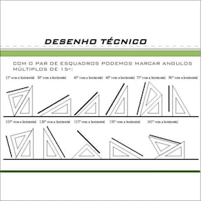 Características : Ângulos dos esquadros : 45/45/90º e 30/60/90º Tamanho : 30 cm Espessura : 2mm padrão desenho técnico Adicionas : semchanfro e sem marcações Marca : fenix