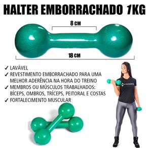 Os halteres estão disponíveis nos pesos de 1kg a 10kg, conforme variação do produto.