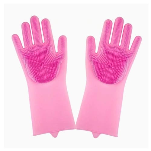 Par De Luvas Com Esponja Silicone Lava Louças Multiuso Rosa