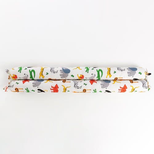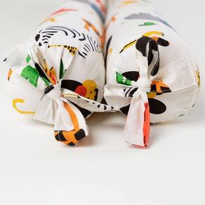 O Par de Rolo Lateral Grande Afrika - Colorido é feito em tecido 100% algodão com recheio em poliéster. Sua superfície é acolhedora, leve e possui um toque macio. Ideal para manter o quartinho do seu bebê colorido e cheio de estímulos e seguro.