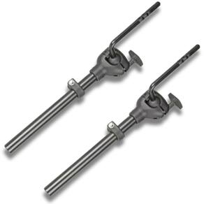 - Par de tom holders com memória, ideal para utilização em baterias profissionais - Cano de 22mm - Comprimento total de 26 cm - Haste: 10mm - Modelo: PAC0016 - Fabricante: RMV - Material: ABS Preto e Aço Cromado