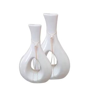 Par de vasos furados em cerâmica de aparador decor - branco Par de vasos furados em cerâmica de salas e aparadores decorativos Par de vasos designers furados em cerâmica ecológica decorativa de alta qualidade e durabilidade com acabamento diferenciado, inspirador e moderno. O produto em cerâmica é uma belíssima peça atemporal, sendo ótimo para entusiastas e profissionais da decoração, pois garante charme, elegância, modernidade e sofisticação. Repagine e decore a sua casa, cozinha, sala de jantar, sala de estar, aparadores e mesas em gerais, deixando-as com um clima agradável, alegre e descontraído, sendo também uma ótima opção de presente. Dimensões: - vaso furado grande: altura: 25 cm x largura: 16 cm. - vaso furado médio: altura: 22 cm x largura: 15 cm. Características do produto: - par de vasos designers furados em cerâmica ecológica de alta qualidade e durabilidade com pintura artesanal. - produzido por artesões profissionais seguindo um padrão de qualidade que atenda o gosto dos nossos clientes - não acompanha cordão - apenas ilustrativo. Cuidados: - recomendamos o uso de pano levemente umedecido para sua limpeza. do produto: - o produto é muito bem acomodado dentro da caixa, e super embalado para evitar quebras, ainda assim possuímos um sistema de e troca. Imagens meramente ilustrativas - produto artesanal, podendo variar de cor e/ou tonalidade Marca: Não Informado