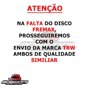 Os discos serão enviados das marcas Fremax ou TRW, ambos de qualidade similar, conforme disponibilidade em estoque.