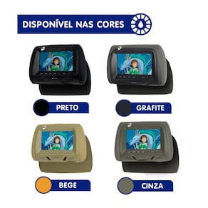 Par Encosto / Descanso De Cabeça E-Tech - Universal - Couro Tela LCD 7´ - 2 Peças - Cor: Cinza
