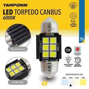 Características:brbaixo consumobrDurabilidade superiorbrIluminação branca friabrFácil instalaçãobrAlta potênciabrAplicação: Luz de teto, porta-malas, porta-luvas e placabrbrO top da qualidade máxima é aqui com a Lâmpada Tarponn LED Torpedo Canbus Premium 41MM 12v 6000kbrModelo Premium, possui uma tecnologia especial de lâmpada LED automotiva e ainda conta com aletas de alumínio de aviação na parte traseira, funcionando como difusor de calor, deixando o circuito mais refrigerado e aumentando a sua vida útil.brindicada para a iluminação de ambientes internos, como luz de teto, porta malas, porta luvas e placa, possui 6 LEDS de última geração, levando toda a elegância, sofisticação e modernidade para você. Para quem busca o máximo em qualidade e perfeição, a Lâmpada Tarponn LED Torpedo Canbus Premium 41MM 12v 6000k é a melhor escolhabrbrbrFicha técnica:brCor: Branca friabrTemperatura de Cor 6000kbrEncaixe: TorpedobrTensão: 12vbrEquivalência: 10wbrTipo de LED: SMD 3030brLinha: PremiumbrFluxo luminoso: 360 ImQuem somos:Somos a Mega GT especialistas na linha de Acessórios Automotivos e Utilidades para a sua casa. Buscamos sempre oferecer para o nosso cliente a melhor opção com o preço justo na sua compra.4- Tem garantiaSim, os produtos têm garantia de 3 meses. Ean: 7900469450633
