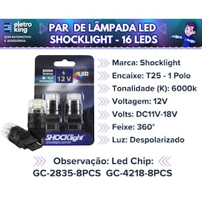 Par Lâmpada Led T25 1 Polo 3156 16 Leds Shocklight - SLL-123156-BC
