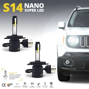 Par Lâmpadas H4 Farol Alto Baixo Renault Logan 2011 2012 2013 Super Led Mini Nano 6000k Sem Adaptar Furar Tampa Shocklight S14