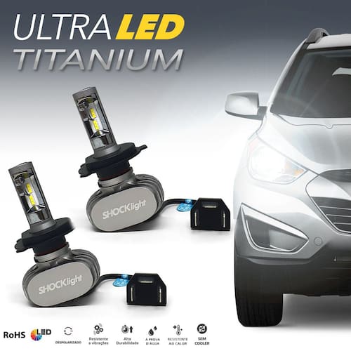 Par Lâmpadas H4 Farol Alto Baixo Spacefox Ultra Led Titanium 10000 Lumens Forte Branco Efeito Xenon 2007 2008 2009