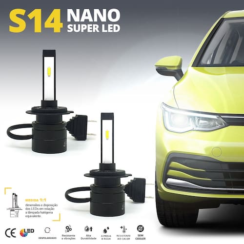 Par Lâmpadas H7 Farol Baixo New Beetle 2000 2001 2002 2003 2004 2005 2006 Super Led Mini Nano 6000k Sem Adaptar Furar Tampa Shocklight S14