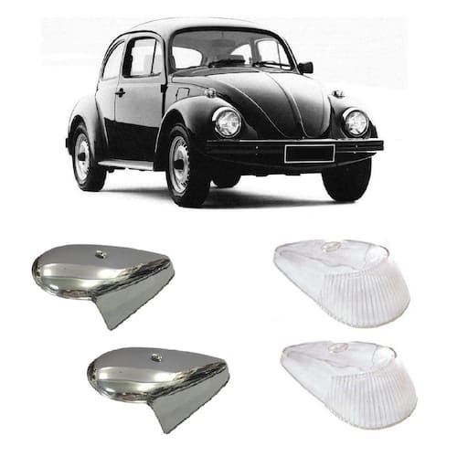 Lente do pisca dianteiro do fusca cristal + capa de metal cromada sorriso largo