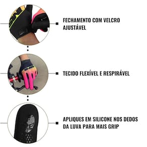 A palma da luva foi confeccionada em couro Amara respirável, muito leve, possui a impressão digital da palma da mão fabricada em silicone proporcionando um melhor controle e aderência às manoplas da moto e também pontas dos dedos sensíveis ao toque caso queira registrar alguns momento de seu esporte sem a necessidade de remover as luvas a cada vez que for fazer isso.