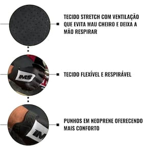As luvas Ims foram confeccionadas com material de alta resistência como poliamida e elastano, possuem o punho de neoprene proporcionando aparência aerodinâmica ao mesmo tempo em que oferece máxima durabilidade e conforto.