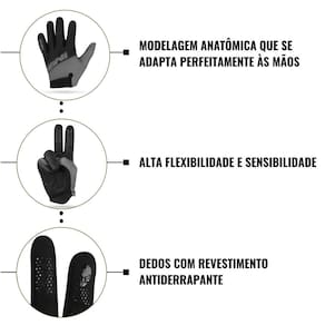 Enquanto outras luvas infantis sufocam ou perdem aderência, este modelo resistente oferece revestimento antiderrapante nos dedos, garantindo controle total nas manoplas, além de modelagem anatômica que se adapta perfeitamente às mãos das crianças.