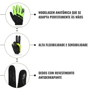 Enquanto outras luvas infantis sufocam ou perdem aderência, este modelo resistente oferece revestimento antiderrapante nos dedos, garantindo controle total nas manoplas, além de modelagem anatômica que se adapta perfeitamente às mãos das crianças.