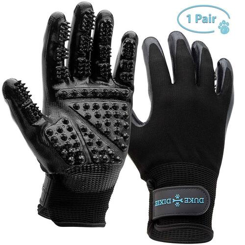 Esta luva remove os pelos soltos e massageia suavemente seus animais de estimação.