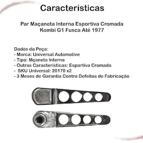 - 2 Maçanetas internas das Portas - Modelo esportivo - Cromado