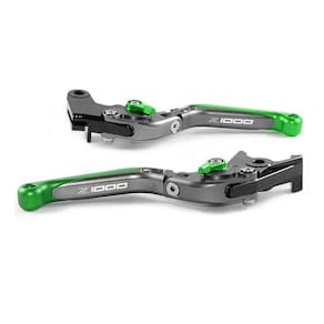 Par Manete Esportivo Articulado Freio Embreagem Kawasaki Z1000 Material: Alumínio 6061-T6 Anodizado; Processo de fabricação: Usinagem com máquina CNC para precisão; Parafusos em aço inoxidável; Ajustador com 06 regulagem de altura. Personalizado, com gravação a laser nos dois manetes escrito Z1000