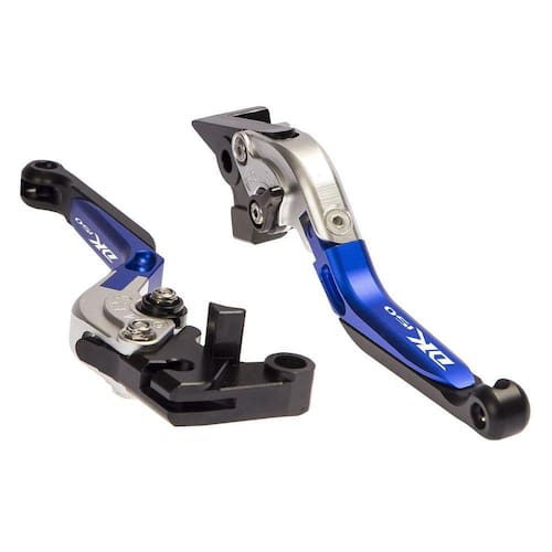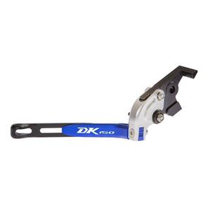 Par Manete Esportivo Extensível Preto Prata Azul Moto Dk 150 Dr 160 Material:Alumínio 6061-T6 Anodizado;Processo de fabricação: Usinagem com máquina CNC para precisão;Parafusos em aço inoxidável;Ajustador com 06 regulagem de altura.Personalizado, com gravação a laser nos dois manetes escrito DK150 Modelo:Articulado 16 cm e Expansível até 19 cm Cor: Prata/Azul/PretoDisponível para:DK150 Todos os anos. Marca: Especiais Part'S