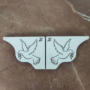 Par Mãos Francesas Decorativas 20cm Pomba da Paz Divino Espirito Santo Aço Branco.