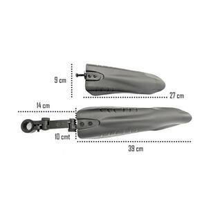 Informações técnicas: Material: nylon de alta resistência Medida paralama dianteiro: 27 cm x 9 cm Medida paralama trazeiro: 39 cm x 10 cm Peso: 160g os 2 paralamas Cor: preta Marca: jws Validade: indeterminada
