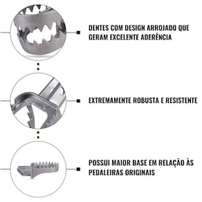 Produzido em aço inox sem soldas ou emendas, este par de pedaleiras é extremamente resistente e robusto, garantindo durabilidade mesmo nas condições mais adversas.