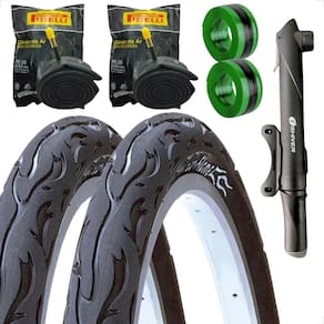 Itens inclusos: 2 unidades Pneu kenda Flame aro 26x2.125 2 unidades Camara de ar aro 26 Pirelli Bico grosso 33mm 2 unidades fita antifuro tectire 1 unidade mini bomba de ar manual Shiver quadro