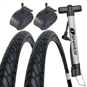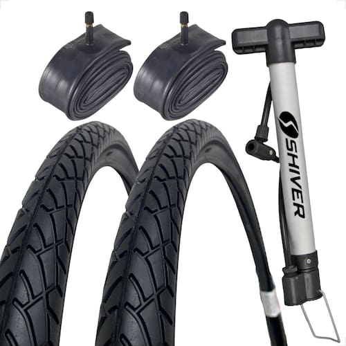 Itens inclusos: 2 unidades Pneu Shiver Rider 26x1.95 2 unidades camara de ar aro 26 33mm bico grosso 1 unidade bomba de ar manual 30 cm Shiver