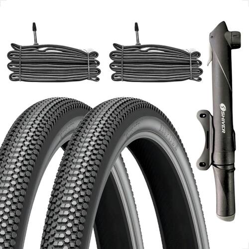 ITENS INCLUSOS: 2 UNIDADES pneu Levorin Eruption aro 29x2.30 2 UNIDADES camara de ar Shiver 29 bico fino 48mm 1 unidade mini bomba de ar manual Shiver quadro