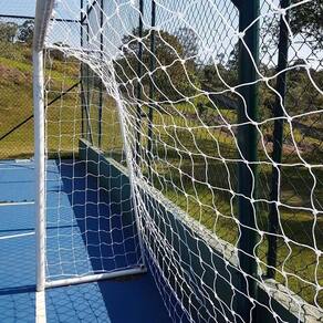- Dimensões: 3,20m na largura, 2,10m de altura, 0,40m de recuo superior e 1,00m de recuo inferior; - Malha Distância entre nós : 12x12cm; - Fio: Confeccionado no fio 4mm de polietileno de alta densidade - 100% virgem, com tratamento contra as ações do tempo U.V ; - Cor: Branca.