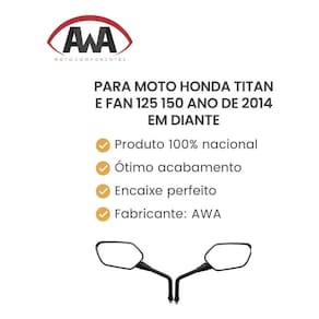 Comprando o produto voce vai estar levando Par de retrovisores Para moto Honda Titan e Fan 125 150 ano de 2014 em diante
