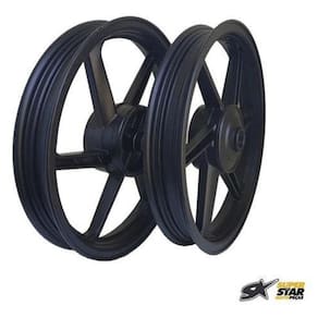 Par Rodas Liga Leve Titan 150 Es Ks 6 Palitos Freio Tambor Par de rodas liga leve es ks modelo original 6 palitos com rolamentos Aplicável em motos: - honda titan 150 es ks 2004 2005 2006 2007 2008 2009 2010 2011 2012 2013 - honda fan titan 160 freio tambor - star 150 160 - modelos ks es esi Freio a tambor traseira Freio tambor dianteira Incluso: Rolamentos Espaçador interno Qualidades: Rodas fabricadas com matéria prima nobre, construídas em sistema de injeção de alumínio de alta tecnologia, o que proporciona além de muita leveza, um ótimo acabamento, altíssima qualidade e resistência. Com exclusivo design, e uma embalagem inédita, as nossas rodas de liga leve chegaram para revolucionar o mercado. Garante beleza e estabilidade para sua moto.
