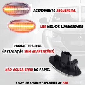 Par Seta Pisca Sequencial Peugeot 207 Lâmpada Transparente O Par Seta Pisca Sequencial Peugeot 207 Lâmpada Transparente é perfeito para quem busca um visual moderno e diferenciado para o seu Peugeot 207. Com sua tecnologia sequencial de acendimento, ele proporciona um efeito visual incrível, chamando a atenção por onde passa. Compatível com diversos modelos de carros, o Par Seta Pisca Sequencial Peugeot 207 Lâmpada Transparente é ideal para Peugeot 206, 207, 307 e 407, além do Peugeot Boxer. Também é compatível com o Citroen C3 até 2012, Citroen C3 Picasso até 2011 e Citroen C5. Com luzes LED na cor âmbar, que proporcionam uma luz laranja intensa, o Par Seta Pisca Sequencial Peugeot 207 Lâmpada Transparente possui um design moderno e elegante. Sua caixa é feita em ABS de alta qualidade, garantindo durabilidade e resistência. O Par Seta Pisca Sequencial Peugeot 207 Lâmpada Transparente é novo e vem lacrado, garantindo a sua qualidade e procedência. Além disso, ele conta com para maior tranquilidade na hora da compra. Principais perguntas sobre o Par Seta Pisca Sequencial Peugeot 207 Lâmpada Transparente: P: Necessita de adaptação para instalar? R: Não, o Par Seta Pisca Sequencial Peugeot 207 Lâmpada Transparente é de fácil instalação, basta seguir as instruções do manual. P: Acusa algum erro no painel do carro? R: Não, o Par Seta Pisca Sequencial Peugeot 207 Lâmpada Transparente é compatível com as versões que possuem a seta no para-lama, não acusando erros no painel. P: O anúncio é referente a uma unidade ou ao par? R: O anúncio é referente ao par, ou seja, inclui o lado direito e o lado esquerdo. Marca: Não Informado Ean: 7894522906864