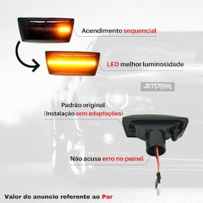 Par seta sequencial chevrolet gm sonic pisca dinâmico led cor: preto somos a storm parts, vendemos peças importadas e nacionais de alta qualidade e com garantia, seu carro merece o melhor, ele merece as peças da storm parts. Par de pisca seta sequencial dinamica para chevolet produto totalmente plug and play, sem necessidade de adaptação, compatível com o modelo , não acende luz no painel, fácil instalação basta remover a luz e instalar a nossa luz led, anuncio referente ao par lado esquerdo + lado direito a tecnologia led vai proporcionar um visual mais moderno e maior segurança e visibilidade à noite, pois sua luminosidade e superior a luz , o led possui uma longa vida útil, 100% à prova d'água. Especificações: condição: novo e com garantia. Tipo: luz pisca lateral led led cor da luz: âmbar cor lente: fume e cristal escolher modelo desejado potência: 5w tensão: 12v material: caixa abs + luzes led