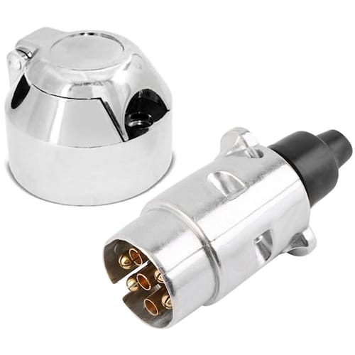 Faça o Reboque em sua Carretinha com segurança e sempre esteja com todas as luzes de sinalização funcionando e essa é a função dessa Tomada Completa Macho e Fêmea, Um equipamento de grande importância para Reboques, Carretas, trailers e automóveis com carretinha, é o conjunto macho-fêmea de tomadas elétricas. São elas que levam energia às luzes do reboque e necessitam por lei estarem em pleno funcionamento no momento do tráfego. Características: DNI8325 - Tomada Elétrica para Engate Redonda 6 polos Completa - Alumínio Polido - 12/24V Tomada Elétrica para Engate Redonda - 6 Polos, Completa - Alumínio Polido - 12/24V Bivolt 12/24V Utilizada para reboques em geral conexão fixa e móvel, Tomada de fino acabamento em alumínio polido, 6 Polos, Completa Macho e Fêmea , Possui gravação de norma DIN, numeração dos terminais, Dimensões Aproximadas: Fixa: 7,2 x 5 x 7,2cm Móvel: 5 x 11 x 4 cm ISO 1724 Ean: 7896562183250