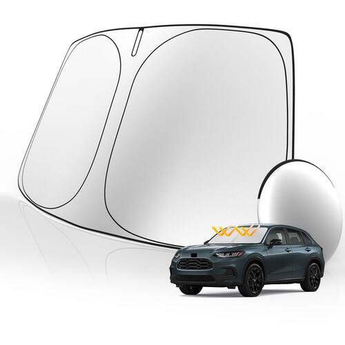 Tombyda Para-brisas para Honda HR-V HRV 2023-2025 Acessórios Janela Frontal Protetor Solar Personalizado Design de Camadas Duplas - Personalização exclusiva: para-sol de para-brisa personalizado para caber nos para-brisas frontais, oferece um ajuste firme e seguro sempre - Fácil de usar: o para-sol do para-brisa do carro Tombyda pode ser facilmente instalado ou dobrado em poucos segundos, o material de poliéster de alta densidade evita que o painel interno do couro rache ou desbote - Proteção contra raios UV: O protetor solar oferece cobertura total sem qualquer vazamento de luz, bloqueando 99,9% dos raios UV e luz solar prejudiciais, fornecendo proteção confiável contra o brilho do sol e mantendo um ambiente fresco e confortável - Materiais premium: o pára-brisas Tombyda oferece isolamento duplo espesso, sem deformação após dobrar resistente, garantindo proteção dupla solar de longa duração para o seu carro - Economia de espaço: O design dobrável de um protetor solar frontal permite fácil armazenamento sem ocupar muito espaço