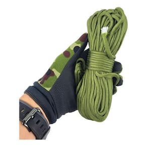 - O paracord 550 é composto por uma capa e sete cordinhas internas mais finas, cada uma delas é feita de dois fios individuais trançados. - Sua resistência é de 550 libras. - O paracord quando é separado em cordinhas é frequentemente utilizado em situações de sobrevivência, campings, em construções na selva, armadilhas, pendurar rede ou lona para uso como telhado, cadarço, corda de arcos, rede trançada de pesca, linha de costura, linha de pesca, fixar equipamentos ou acessórios a mochilas, fixar pontas de flecha para caça improvisadas nas hastes, situação em que comumente é usada em conjunto com alguma cola de origem vegetal ou animal. Medidas: Comprimento Total: 29 M Peso: 130g 100% Poliamida Nylon com 7 filamentos no interior Carga: 30kg Espessura: 4 mm
