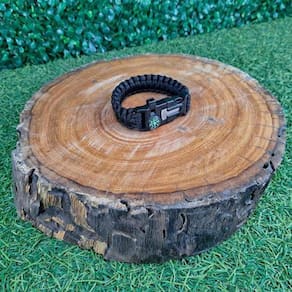Pulseira de Sobrevivência e ideal Para quem gosta de camping, caminhadas, montanhismo. Seu Cabo Paracord de 3,8 M suporta ate 550 libras, cabo é acondicionado na fivela formando uma pulseira em malha compacta e fácil de transportar Caracteristicas: