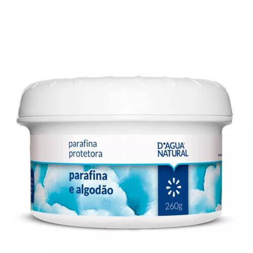 Parafina Protetora Algodão 260g - D'agua NaturalA Parafina Protetora com óleo de Algodão forma uma camada protetora, que impede e perda de agua, mantendo a hidratação da pele. Seu Ativo é rico em acidos graxos essenciais, principalmente o Omega 6 que é um poderoso emoliente. O produto devolve a hidratação da pele ressecada, evitando descamação.Para ser aplicada antes do uso dos descolorantes, a Parafina Protetora Dagua Natural forma uma película sobre a pele, evitando irritações e a perda de hidratação decorrente do clareamento.A Dagua Natural desenvolveu um kit hidratação e proteção da pele exclusivamente para o clareamento dos pêlos. Os cosméticos são formulados a partir da parafina, que atua como uma camada protetora da pele, deixando-a livre do contato direto com outras substâncias, como no caso da utilização no clareamento de pêlos, evitando possíveis irritações cutâneas.Nos produtos que possuem finalidade hidratante, a parafina serve especialmente para hidratar e renovar a pele. Ela estimula a microcirculação, aumentando a oxigenação dos tecidos e proporcionando uma hidratação rápida e eficiente.Indicação:É indicada para uso no clareamento de pelos, agindo como uma camada protetora evitando irritações. O óleo de algodão, juntamente com a parafina, auxilia na oclusão e na retenção da umidade da pele. Além disso, proporciona uma hidratação rápida e eficiente.Modo de Usar:Tanto no processo de clareamento como no de hidratação, aplicar uma leve camada sobre a pele, deixar agir e após retirar com água ou de forma que o profissional optar.Contém: 01 - Parafina Protetora Algodão 260g - D'agua Natural