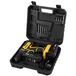 Conteúdo da Embalagem: 1 Parafusadeira/furadeira, 1 maleta, 2 baterias de 20V, 1 carregador bivolt automático, 6 brocas para madeira (1,5 mm, 2,5 mm, 3,0 mm, 4,0 mm, 5,0 mm e 6,0 mm), 6 bits (2 fendas (5 mm e 6 mm), 2 phillips (PH1 e PH2) e 2 pozidrive (PZ1 e PZ2)) e 1 soquete magnético encaixe de 1/4" + 1 bits ponta dupla (ponta PH2 e ponta fenda 5.5 mm).