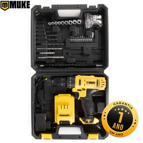 Parafusadeira e Furadeira de Impacto a Bateria 12V 3/8 10MM Muke Tools com 30 Acessórios e Maleta