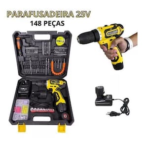 Parafusadeira furadeira 02 bateria 25v 148 pcs profissional