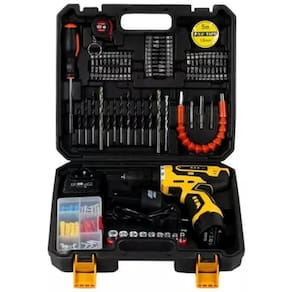 - 02 baterias de lítio 2v - 01 carregador de mesa bivolt; - 01 ponta dupla para parafusar - 13 brocas - 60 bits - 01 adaptador para extensor - 01 alongador 25cm flexível - 09 soquetes sextavados - 01 estojo com parafusos e buchas -01 trena - 01 fita isolante - 01 chave manual
