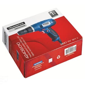 Uma caixa de ferramentas não seria nada sem esse item. A Parafusadeira/Furadeira Tramontina 280 W 3/8 de Polegada para Uso Profissional com Velocidade Variável e Sistema de Reversão 127 V é ideal para trabalhos de apertar e soltar parafusos em madeiras, plásticos e metais. Também possui a função de perfuração. Este produto não pode faltar na sua caixa de ferramentas. Orientações Mandril: 3/8'' - 10 mm de aperto rápido que dispensa a utilização de chaves. Rotação: 0-750 rpm. Torque máximo: 24 Nm. Potência: 280 W. Frequência: 50 / 60 Hz.Corpo e botões injetados. Cabo elétrico de 2 metros. Interruptor com velocidade variável e reversível. Possui botão trava para trabalhos contínuos. Empunhadura ergonômica e emborrachada. Capacidade de perfuração: Aço/Alumínio: 10 mm, Madeira: 20 mm. 23 posições de torque + 1 perfuração. Motor robusto e de alto desempenho. Excelente desempenho em operações de perfuração e parafusamento. 100% montada sobre rolamentos proporcionando maior vida útil para o equipamento. Acompanha manual de instruções. As ferramentas são produzidas e testadas conforme normas específicas.Rede de Assistência Técnica em todo Brasil. Características Gerais EAN13 7891114128239 DUN14 17891114128236 NCM 8467.29.92 Peso Líquido 1,3400 kg. Peso Bruto 1,5100 kg. Metragem 0,004406 m³. Dimensões Embalagem (Compr. X Larg. X Alt.) 250x 75x 235 mm. Dimensões Produto (Compr. X Larg. X Alt.) 240x 190x 190 mm. Cor 1 00529A Hexa Observações Use óculos, luvas e outros equipamentos de proteção individual (EPIs) de acordo com a tarefa a ser executada.Confira a tensão indicada no produto antes de usá-lo. Mantenha a ferramenta fora do alcance de crianças. Recomenda-se consultar o manual de instruções para mais informações. Armazene em local limpo e seco.Respeite sua cidade e o meio ambiente, para descarte dos produtos e embalagens, siga as orientações de reciclagem vigentes.