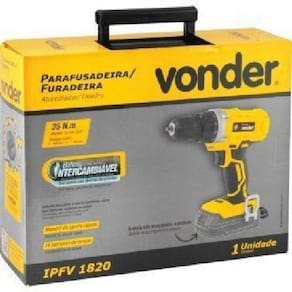 Este equipamento utiliza um modelo de bateria que pode ser intercambiável (não acompanha), ou seja, uma bateria que é compatível com outros modelos de ferramentas a bateria vonder. Por isso, em sua próxima compra de ferramenta a bateria vonder, procure um modelo que comece com a referência I, ou que esteja identificado com o selo Bateria intercambiável vonder. Desta forma, você garante modelos mais econômicos, sem a necessidade de aquisição de novas baterias e carregadores para uso em seu equipamento. Compacta e prática de usar. Possui regulagem de torque em 19 posições, adequando-se à necessidade de aperto de acordo com a dureza do material e 1 posição para perfuração, led para melhor visibilidade do local de trabalho e cabo com revestimento emborrachado, proporcionando maior conforto ao operador. Conta também com mandril de aperto rápido, que facilita a troca rápida do acessório. Bateria: não acompanha Capacidade do mandril: 3/8 - 10 mm Tipo de velocidade: variável (2 velocidades) Tipo de mandril: aperto rápido Rotação da furadeira/parafusadeira: 0 - 400/min / 0 - 1.100/min Sistema de reversão: reversível Capacidade máxima de perfuração em aço: 10,0 mm Capacidade máxima de perfuração em madeira: 13,0 mm Torque máximo/ força de aperto: 35 n.M (3,5 kgf.M) Tensão do carregador de bateria: não acompanha Nível de vibração (m/s²): 3,86 m/s² Incerteza k (m/s²): 1,5 m/s² Segue norma: abnt nbr iec 60745-1, abnt nbr iec 60745-2-1 e abnt nbr iec 60745-2-2