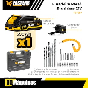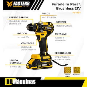 Chega de improvisar, de procurar acessórios e de ferramentas que não entregam potência suficiente. Apresentamos a Furadeira Parafusadeira FST087 da Fasterr, projetada para quem exige desempenho, durabilidade e praticidade em todos os projetos, desde a montagem de um móvel até obras mais complexas.