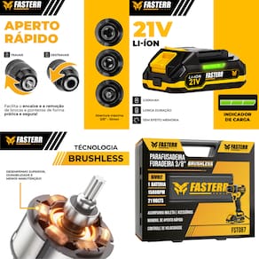 FURADEIRA PARAFUSADEIRA 3/8 COMPACTA 21V FASTERR FST087