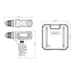 Parafusadeira/Furadeira à Bateria 12V - 30 peças TramontinaA Parafusadeira Furadeira Tramontina 12V com Maleta 30 peças vai deixar as tarefas diárias ainda mais fáceis. Pensando na praticidade, ela possui empunhadura ergonômica e emborrachada, tornando o uso mais confortável. Possui uma bateria moderna com íons de Lítio, que dispõe de tecnologia especial sem efeito memória, podendo ser recarregada a qualquer momento sem danificar as células; além disso, a bateria tem alta capacidade 1300 mAh/ 1,3 Ah, proporcionando alto desempenho e produtividade, além de possuir carga estável com baixa perda de capacidade e rendimento durante a utilização. Acompanha maleta com 30 peças, proporcionando diversas opções de utilização. Design moderno e robusto. Empunhadura ergonômica e emborrachada. Bateria de Íons de lítio de alta capacidade 1300 mAh / 1,3 Ah que proporciona ao usuário alto desempenho e produtividade. Bateria de Íons de Lítio com tecnologia especial sem efeito memória. Podem ser recarregadas a qualquer momento sem danificar as células. Bateria de carga estável com baixa perda de capacidade e rendimento durante a utilização. Carregador bi-volt proporcionando ao usuário maior flexibilidade no carregamento da bateria. Mandril com sistema de aperto rápido que dispensa a utilização de chaves. Mandril 3/8" de aperto rápido. 19 posições de torque + 1 perfuração. Interruptor com velocidade variável, reversível e função trava. Motor velocidade variável: 0-800 min-1 - rpm. Torque máximo: 15 Nm. Carregador bi-volt (127-220 V). Tempo para carga completa: 5 horas. Bateria de íons de lítio de alta capacidade 1300 mAh - 12 V. LED frontal para iluminação da área de trabalho. LEDS laterais para indicação do nível da bateria. Acompanha: maleta para transporte; carregador bi-volt; adaptador de bits 55mm; 5 bits ponta chata 3, 4, 5, 6 e 7 mm; 5 bits hexagonais 3, 3,5, 4, 5 e 6 mm; 3 bits ponta cruzada PH1, PH2 e PH3; 3 bits ponta pozidrive PZ1, PZ2 e PZ3; 6 bits trafix T07, T10, T15, T20, T25 e T30; 2 bits Spindle S1 e S2; 1 bits longo ponta chata 5 mm; 1 bits longo ponta cruzada PH2 e manual de instruções. Sempre utilizar óculos de segurança para proteger os olhos. Utilizar luvas para proteger as mãos. Manter a ferramenta fora do alcance de crianças. Nunca carregar as baterias em temperaturas superiores a 40°C e inferiores a 0°C. Recomenda-se consultar o manual de instruções para mais informações. Armazene em local limpo e seco. Respeite sua cidade e o meio ambiente, para descarte dos produtos e embalagens, siga as orientações de reciclagem vigentes.