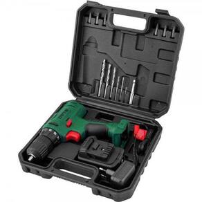 1 Parafusadeira/furadeira. Acompanha: 1 maleta, 1 bateria de 12 V, 1 fonte bivolt automática, 6 brocas de aço rápido (1,5 mm, 2,5 mm, 3 mm, 4 mm, 5 mm e 6 mm), 6 bits (2 fendas (5 mm e 6 mm), 2 phillips (PH1 e PH2) e 2 pozidrive (PZ1 e PZ2) e 1 soquete magnético com encaixe de 1/4".